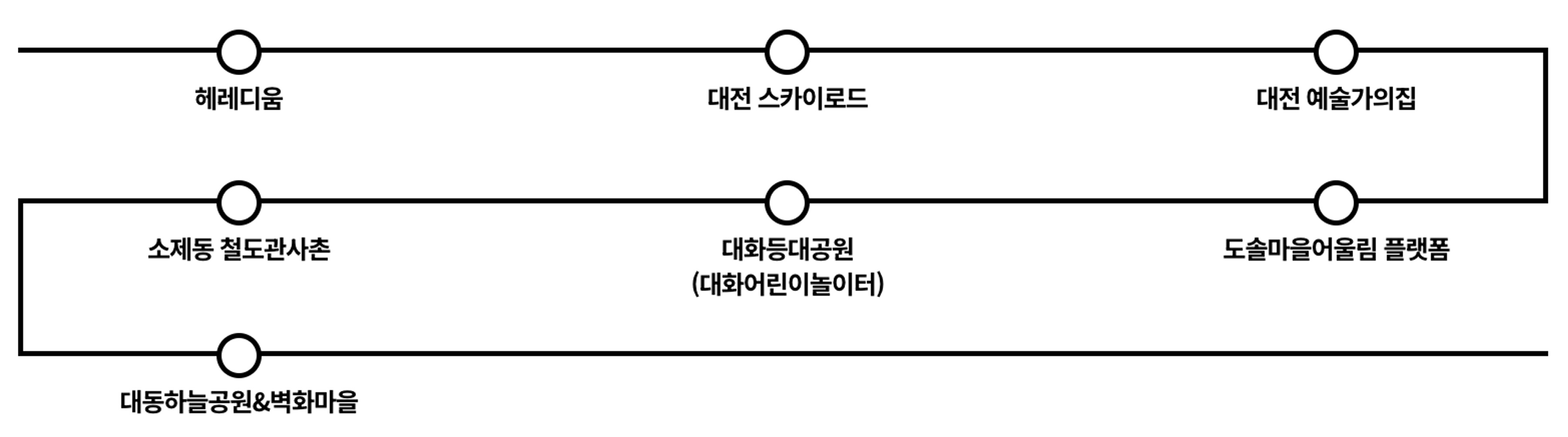 올해 공디페의 지역협력도시로 참여한 대전은 원도심 일대에 일제강점기부터 세워진 다양한 근대문화유산을 보유하고 있다. 1922년에 지어진 옛 동양척식주식회사 대전 지점을 복원한 ‘헤레디움’은 아픈 역사가 담긴 근대 건축물을 동시대의 예술적 영감을 전하는 복합문화공간으로 조성한 사례다. 그 밖에 길이 214m에 이르는 국내 최대 규모의 초대형 LED 아케이드 구조물 ‘스카이로드’, 범죄 예방 환경 설계(CPTED)를 적용한 어린이 놀이터 ‘대화등대공원’, 철도도시 대전의 100년 역사를 품은 마을 ‘소제동 철도관사촌’ 등 원도심 활성화에 나선 대전시의 도시 재생 사업을 통해 새롭게 태어난 7곳의 문화공간으로 구성된 코스다.