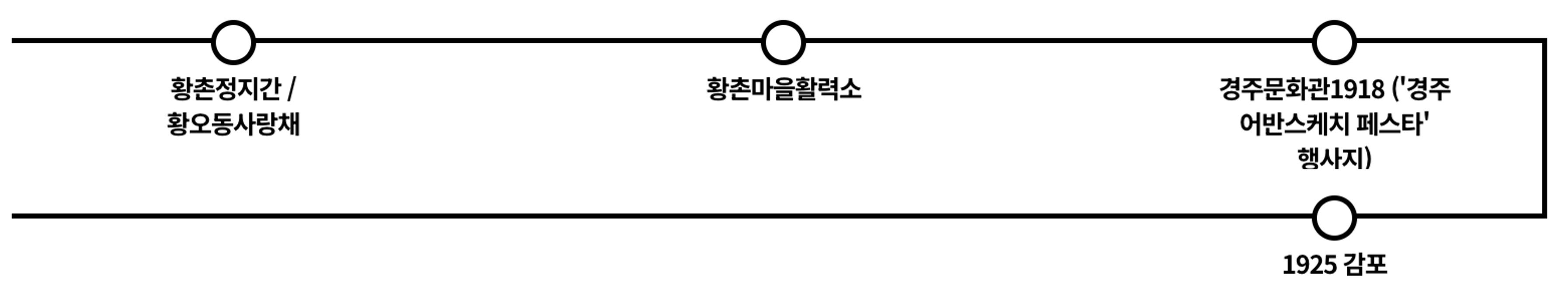 경주에서는 지역 공동체를 활성화하고 원도심에 매력을 더하는 공간과 여러 커뮤니티 활동을 만나볼 수 있다. 마을기업이 중심이 되어 음식을 매개로 한 다양한 프로그램을 운영하는 공유주방 ‘황촌정지간’, 문화적 단절이 심화된 지역에 자생이 가능한 성장 기반이 되고 있는 ‘황촌마을 활력소’, 100여 년간 운영되다가 새로운 철도 개통으로 인해 문을 닫은 경주역이 재탄생한 문화공간 ‘경주문화관 1918’, 개항 100년의 역사를 품은 감포항의 이색 카페 ‘1925 감포’가 주요 거점이다. 특히 황촌 일대와 경주문화관1918에서는 공디페의 협력프로그램인 ⟪경주 어반스케치 페스타*⟫가 열려 더욱 활기를 더했다.