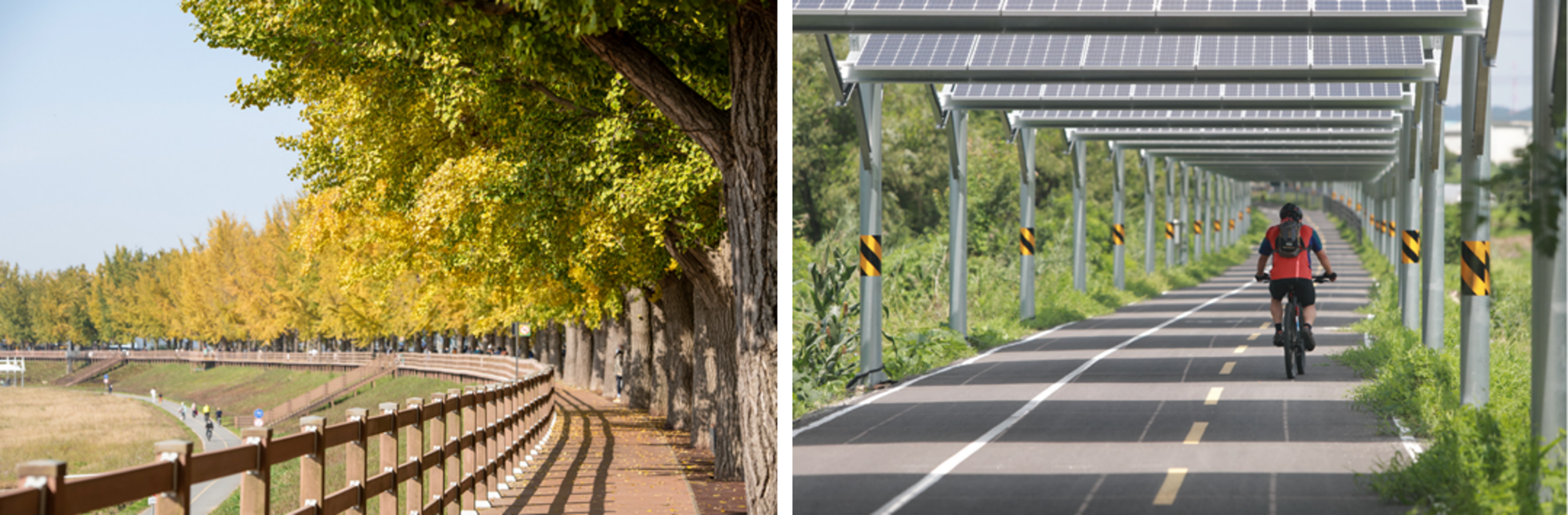 공공디자인 거점 투어(아산) : 탄소중립을 실천하는 녹색 거점 - (왼쪽부터)은행나무길, 태양광 자전거도로ㅣ사진: 각 거점 제공