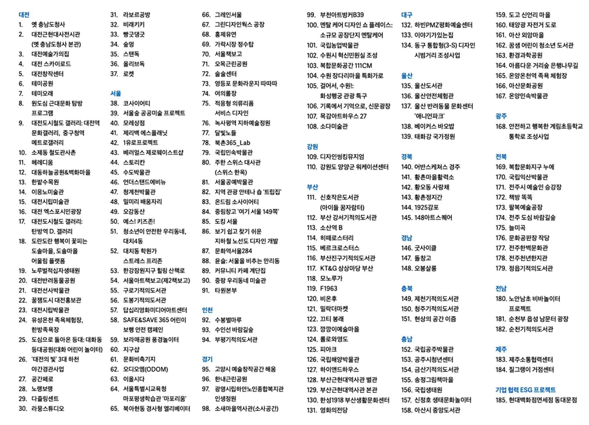 ▷ 전국 공공디자인 거점 185곳 목록 (다운로드)