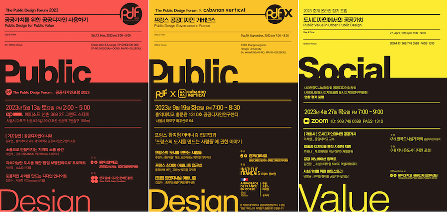 2023년 열린 공공디자인포럼 포스터 모음. 이미지 출처: 홍익대학교 공공디자인연구센터