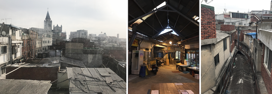 노후한 슬레이트 지붕으로 인해 채광과 환기가 차단되면서 골목 구석구석마다 어둡고 폐쇄적이었던 환경 개선 전 신흥시장 모습. 사진 출처: UIA건축사사무소