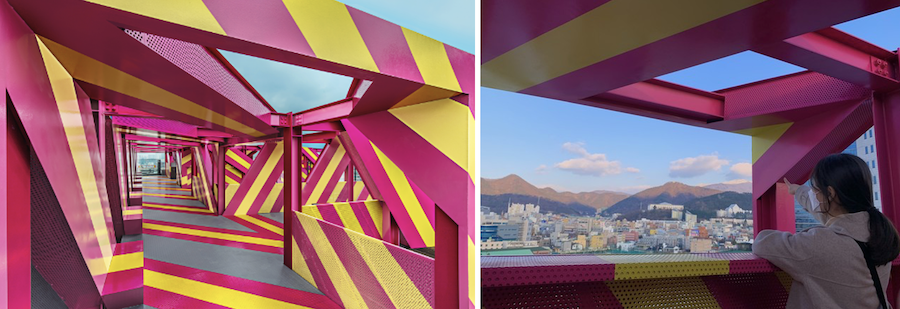 국립아시아문화전당 주변의 전망대 역할을 하는 ‘뷰폴리’. 페스티벌 기간 동안 광주 도심 경관과 야경을 관람할 수 있다. 사진 출처: gwangjufolly.org