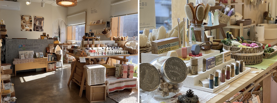 서울 공공디자인 거점 중 한 곳인 성수동 송정길에 위치한 베러얼스 제로웨이스트샵. 편집숍 운영과 함께 일상에서 실천하는 지속 가능한 활동을 장려하는 곳으로 ‘위클리 리본 스테이션(Weekly Reborn Station)’이라는 정기 자원 순환 프로그램과 플로깅 등의 행사를 열고 있다. 사진 출처: 공공디자인 페스티벌 홈페이지