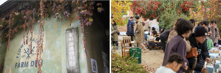 페스티벌은 농부시장 마르쉐@와 협력해 ‘공존하는 시장, 도시와 자연을 잇다’라는 이름으로 10월 25일 성수동 일대에서 마켓과 워크숍을 연다. 성수 언더스탠드에비뉴에서는 다양한 농부, 요리사, 공예가가 참여하는 지역 상생 마켓이 열리며, 성수 코사이어티에서는 워크숍 ‘공존하는 차담’이 진행된다. 이 워크숍에서는 농업을 기반으로 한 생태적 실천과 예술적 접근을 탐구하는 창작 집단 ‘종합재미농장’과 도시를 살아 있는 생태계로 바라보고 자연과 공존할 수 있는 방법을 고민하는 ‘시티애즈네이처(City as Nature)’ 두 팀의 기록 전시가 열린다. 이를 통해 지구와 함께 상생하는 방법을 살펴보고, 직접 만든 풀차를 나누며 도시와 자연의 공존을 이야기한다.