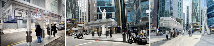 대통령상을 수상한 서초구청의 ‘기술과 디자인으로 새로운 흡연 문화 만들기’ 프로젝트. 공공장소 내 흡연 갈등을 완화하기 위해 개발된 개방형 제연 흡연 시설이다. 사진 제공: 한국공예·디자인문화진흥원