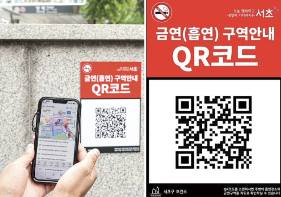 서초구청의 기술과 디자인으로 흡연 문화 만들기 QR코드. 반경 200m 내에 있는 실외 금연 및 흡연 구역 정보를 알 수 있다. 사진 출처: 세계타임즈