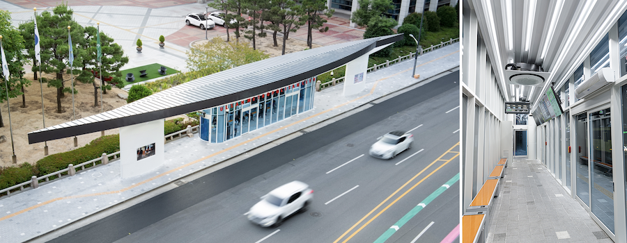 한국공예·디자인문화진흥원 원장상을 수상한 울산광역시의 ‘스마트 버스 승강장 31109’. 폭염, 한파, 미세먼지 등 기후 변화에 대응하기 위해 개발된 미래형 대중교통 인프라로 ICT 기술과 디자인을 결합해 편의성과 안정성을 높였다. 사진 제공: 한국공예·디자인문화진흥원