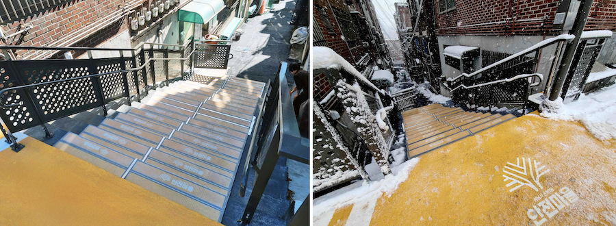 한국공예·디자인문화진흥원 원장상을 수상한 성남시의 ‘사계절 미끄럼방지 탄소발열매트 계단 조성’. 겨울철 결빙과 미끄럼 사고를 예방하기 위해 탄소 발열 기술을 적용한 공공시설물이다. 사진 제공: 한국공예·디자인문화진흥원