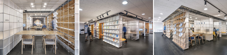 학회장상을 수상한 광주무등도서관의 비스포크 라이브러리. 노후 공공도서관을 지속 가능한 방식으로 리모델링한 프로젝트로 조립식 모듈 시스템을 적용해 이용 목적에 따라 공간을 손쉽게 재구성할 수 있도록 설계했다. 사진 제공: 한국공예·디자인문화진흥원