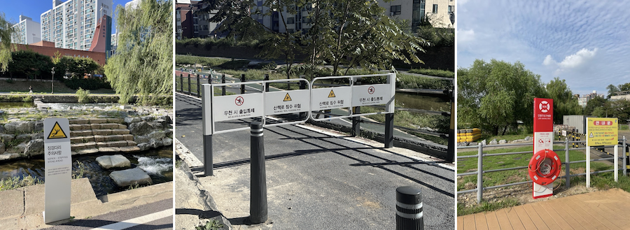 학회장상을 수상한 용인시의 ‘생활안전을 더하는 공공디자인’. 금학천, 기흥호수, 탄천 등 주요 하천 산책로에 적용된 표준 안전 디자인으로 재난, 기후 변화에 대응하기 위한 수변 안전체계를 구축했다. 사진 제공: 한국공예·디자인문화진흥원