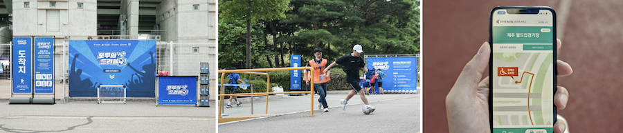 2023 우수상(한국공예·디자인문화진흥원 원장상)을 수상한 ‘모두의 드리블’. 디마이너스원, 하나금융그룹, 한국프로축구연맹이 진행한 것으로, 이동약자가 경기장까지 올 수 있는 최적의 경로를 파악해 웹과 모바일 앱으로 개발했다. 사진 출처: 공공디자인 종합정보시스템