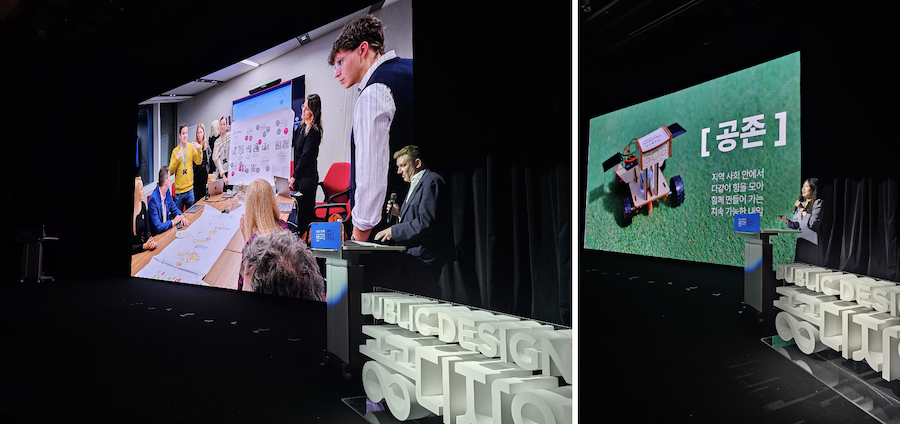 또한 앤드류 나이트(Andrew Knight) 영국 행정서비스 정책디자인 커뮤니티 총괄은 ‘공존을 위한 디자인: 민주적 인프라로서의 공공디자인’을 주제로 정책과 행정 시스템 속에서 공공디자인이 시민 참여와 민주성을 촉진하는 구조적 장치가 되어야 한다고 제안했다. 이어서 박종연 광명시청 공공디자인팀 디자인전문관은 치매 예방을 위한 정원 프로젝트 ‘인생정원’을 알렸고, 서창완 국립생태원 기후생태연구실 실장은 기후 생태 연구를 바탕으로 자연과 함께하는 기후 위기 대응 사례를 발표했다. 홍수영 전북에너지서비스 매니저는 시니어 강사가 어린이를 대상으로 환경 교육을 진행하는 ‘착한에너지학교’를 소개하며 세대와 환경이 공존하는 공공디자인의 실제적 방향을 공유했다.